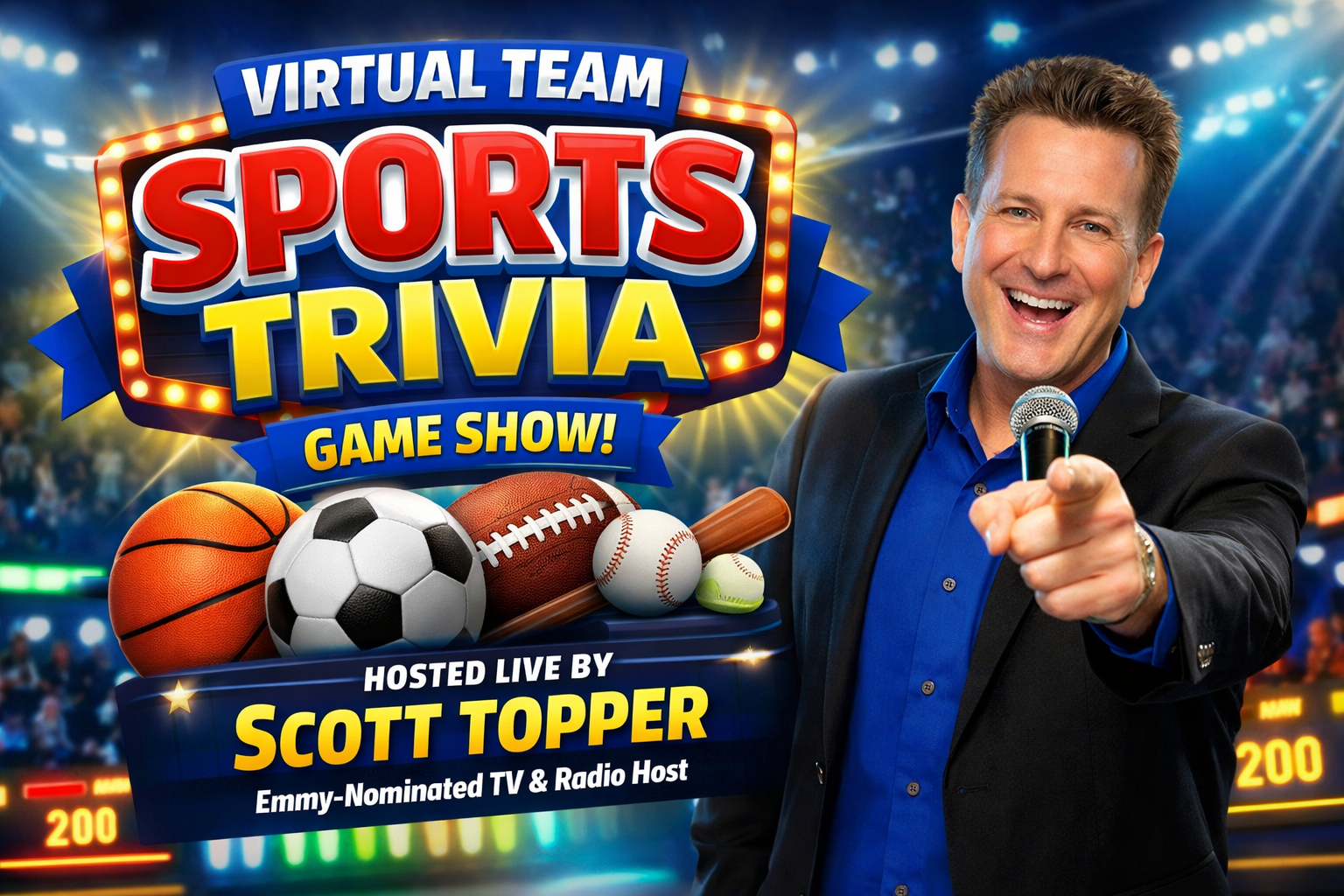 If you’re searching for a live-hosted, high-energy online team building event that actually gets people laughing, talking, and bonding, Virtual Team Sports Trivia delivers an unforgettable experience. Hosted LIVE on Zoom by Emmy-Nominated TV & Radio Show Host Scott Topper, this interactive trivia game show transforms remote teams into cheering fans and friendly competitors.