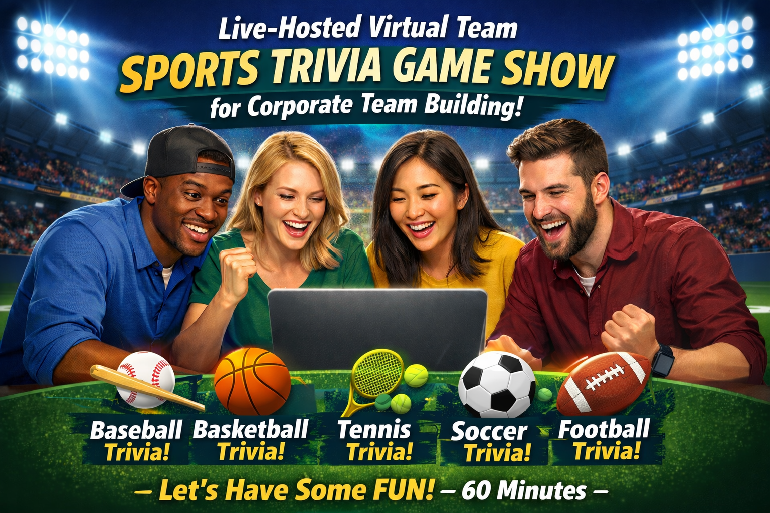 A 60-minute online sports trivia game show for corporate remote teams.